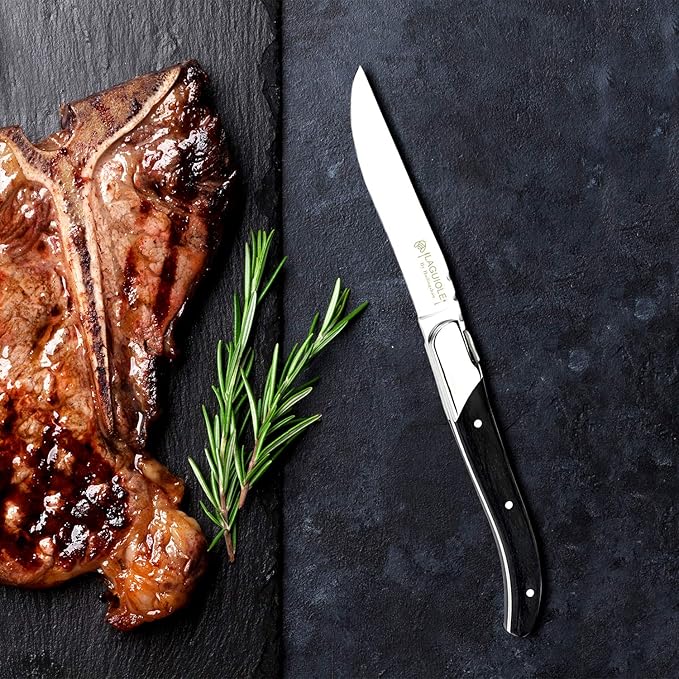 - [Premium Material] Made of 18/10 stainless steel, nontoxic and tasteless, corrosion-proof and heat resistant. Laguiole by Hailingshan dinnerware knives have rust resistance and sharpness retention.