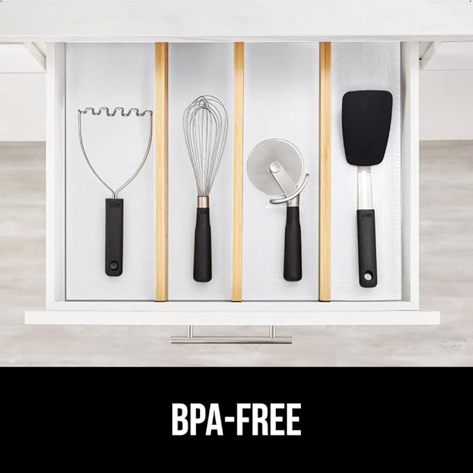 GORILLA GRIP DripGuard Shelf Liner, Non Adhesive Drawer and Kitchen Cabinet Protector, 20x240 Inch, Slip Resistant BPA Free Smooth Surface Plastic Liners for Cabinets, Bathrooms, Closets, White