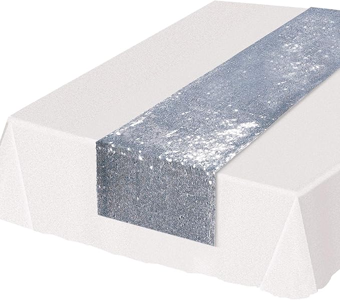 - INCLUDES ONE TABLE RUNNER made from high-quality fabric with full silver sequin coverage for radiant shine and elegant texture