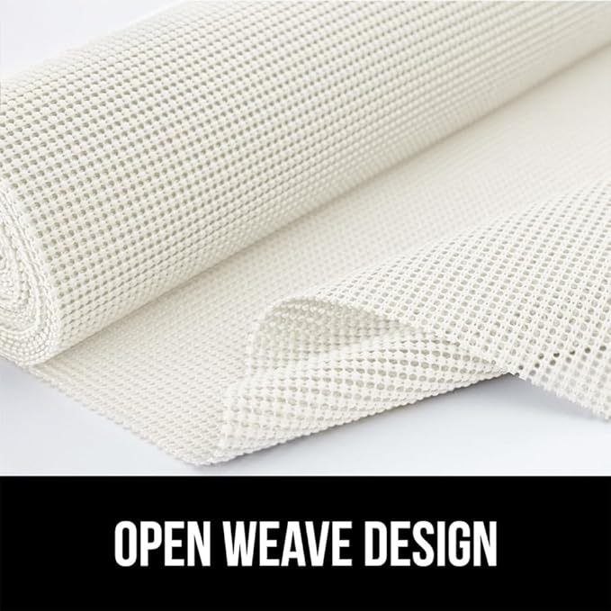 GORILLA GRIP powerGRIP Drawer Shelf and Cabinet Liner, Thick Strong Hold, Non-Adhesive Liners Protect Kitchen Cabinets and Cupboard, Bathroom Drawers, Easy Install, Breathable Mat, 20" x10' Snow White