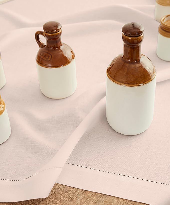Solino Home Pink Linen Tablecloth 52 x 52 Inch - 100% Pure Linen Square Table Throw - Classic Hemstitch, Machine Washable Table Cloth for Valentines