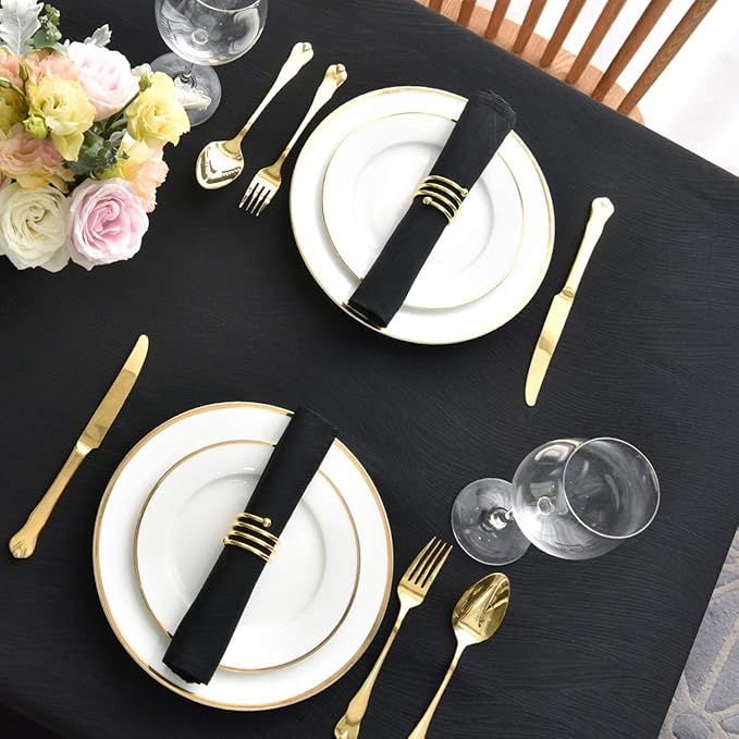 maxmill Jacquard Cloth Napkins 20 x 20 Inch Swirl Pattern 4 Packs Solid Washable Polyester Comfortable for Restaurant Family Dinners Weddings Parties and Banquets Black