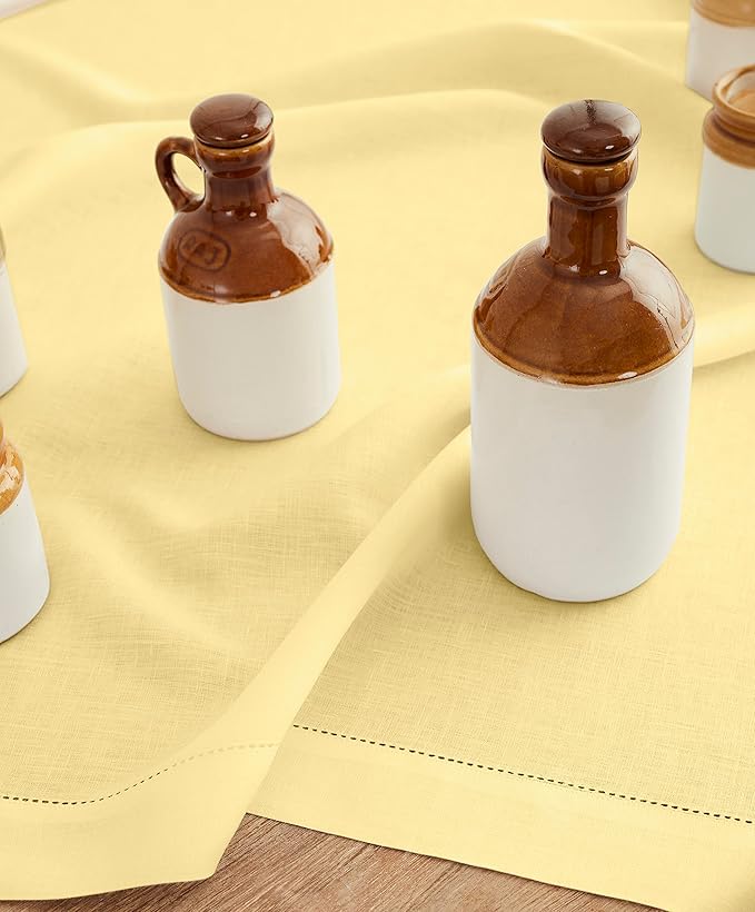 Solino Home Linen Yellow Table Runner 132 Inches Long - 100% Pure Linen Extra Long Table Runner 14 x 132 Inch - Classic Hemstitch