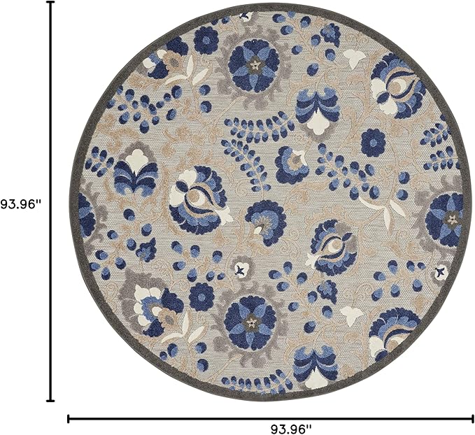 Nourison Home Aloha Natural Blue 7'10" x Round Area Rug - Easy Clean, Non Shedding, Bed Room, Living Room, Dining Room, Kitchen (8' x Round)