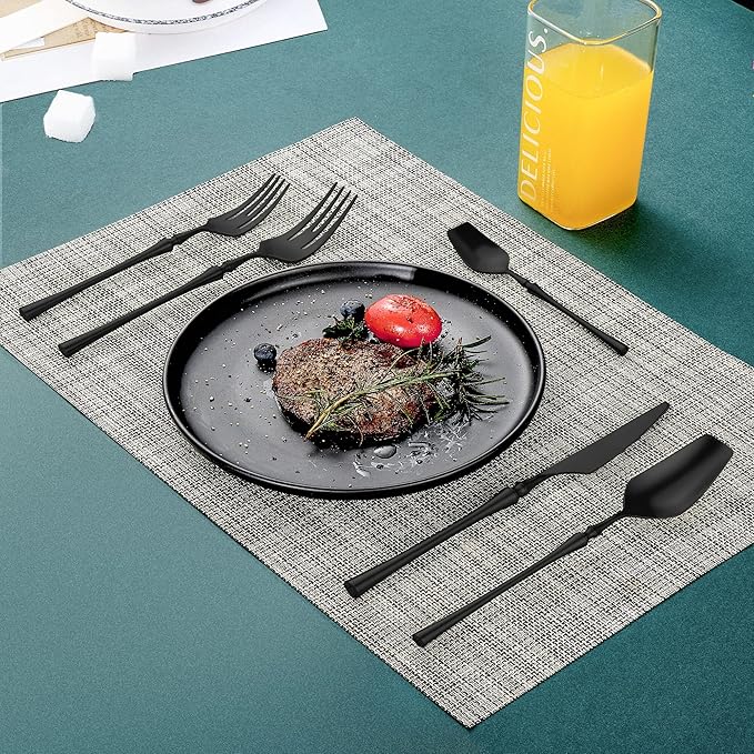 Lemeya 20-Piece Matte Black Silverware Set for 4,Modern 18/10 Stainless Steel Flatware Set,Unique Rustic Cutlery Utensils Set,Spoon and Fork Set for Home, Restaurant,Mirror Polished,Dishwasher Safe