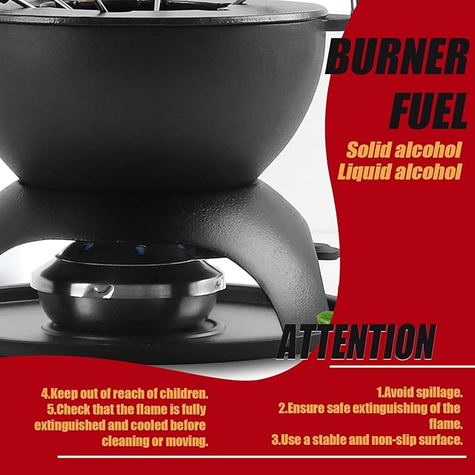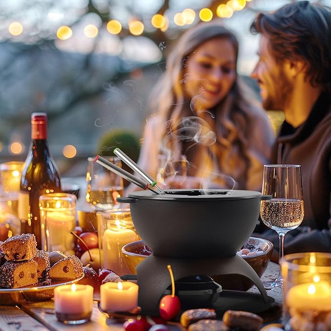 - EXCELLENT HEAT RETENTION & CONTROL: Crafted with durable, high-quality cast iron, our fondue pot ensures perfectly melted cheese and chocolate every time. Its superior heat retention and even distribution keep your fondue warm and delicious. Easily control the flame with a simple turn on the included adjuster for precise heating