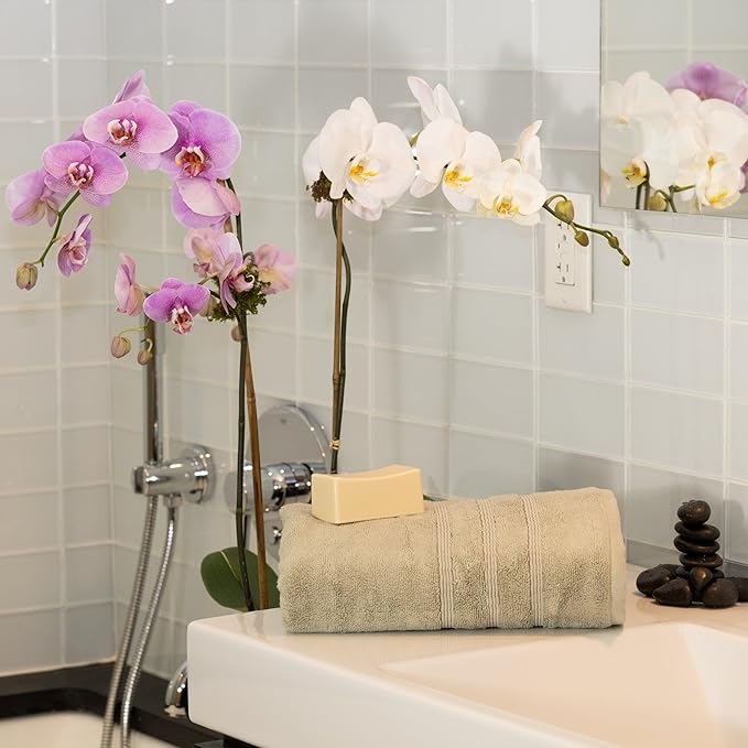 - 50% Viscose Made From Bamboo & 50% Aegean Turkish Combed Cotton, 700 GSM, Dobby Border, 2-ply Twisted Yarn – Carefully crafted with optimal weight and thickness to soak up water and comfort your skin. Double twisted yarns are spun out of extra-long fibers to ensure superior quality and performance. Buy individually or in Family Multi-Packs.