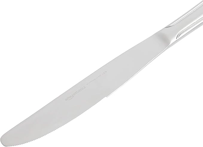 Amazon Basics Silverware Set, Stainless Steel Flatware, Dishwasher Safe, Service for 4, 20-Piece Forks and Spoons, Crown Edge