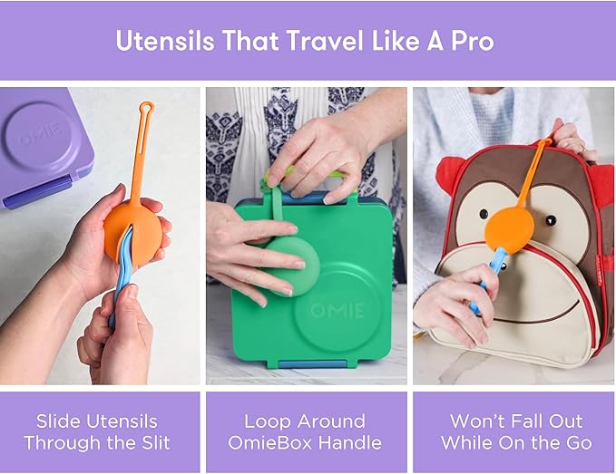 - TAKE WITH YOU ANYWHERE - Small, lightweight, and portable utensils attach to anything. The utensils are held snugly in the pod and will not fall out. Check out our other listings to purchase extra utensil sets or OmieBox bento box.