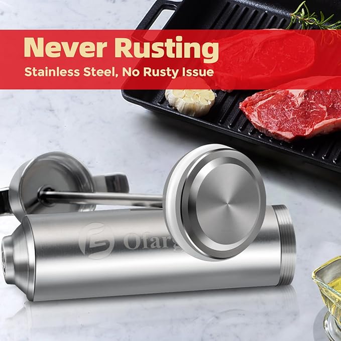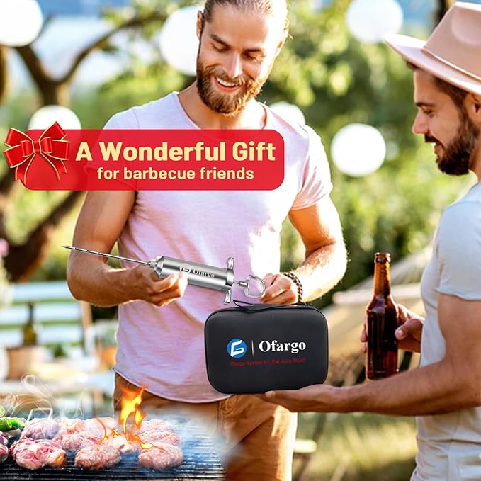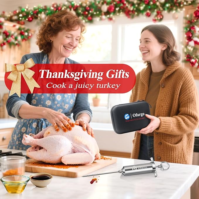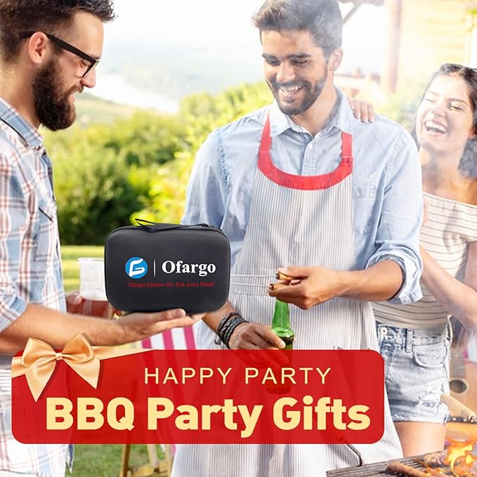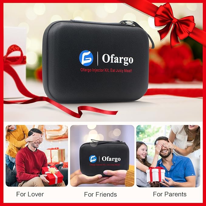 - JUICY TENDER & YUMMY for EVERY BITE: Ofargo food injector is solidly built to last to intensify flavors of Thanksgiving Christmas turkey, beef brisket, pork, lamb, chicken, goose, duck; inject jelly pudding into donuts, rum into strawberries, brine into home-cured meats; practical for kitchen tools, holidays, BBQ, grill, family party, bonfire party