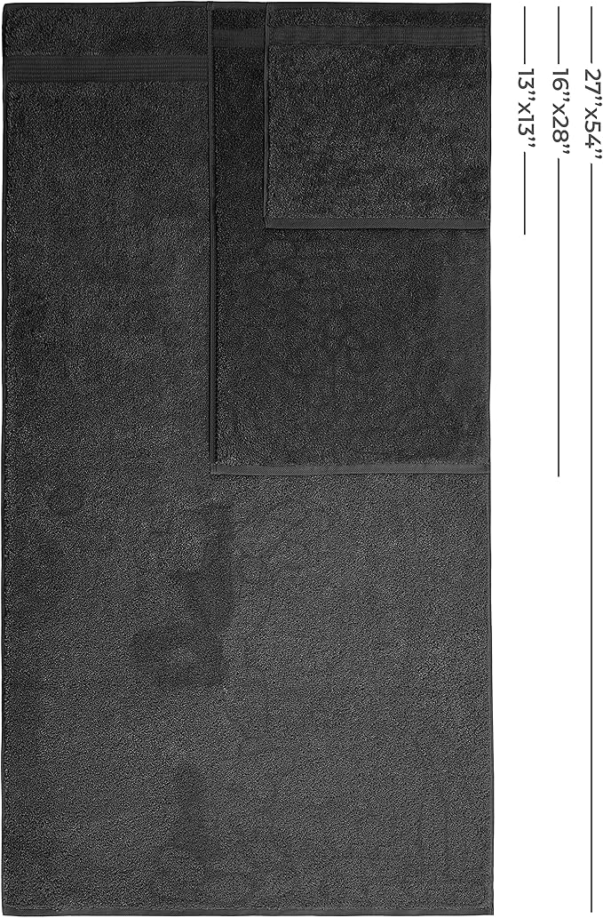 American Veteran Towel, 100% Cotton Turkish 6 Piece Towel Set, Luxury Towels Set of 6 for Bathroom Essentials, 2 Bath Towels 2 Hand Towels 2 Washcloths, Black
