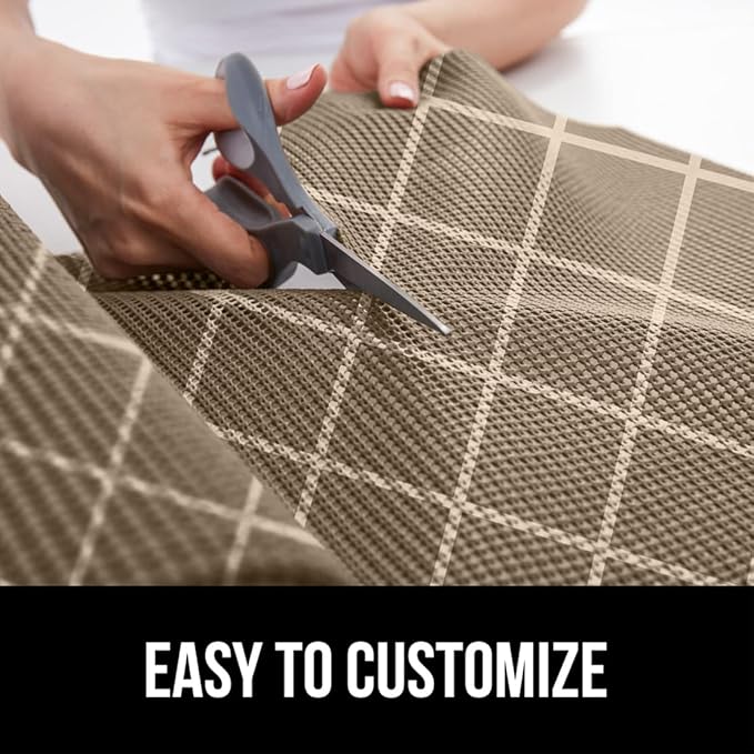 GORILLA GRIP powerGRIP Drawer Shelf and Cabinet Liner, Thick Strong Hold, Non-Adhesive Liners Protect Kitchen Cabinets and Cupboard, Bathroom Drawers, Easy Install, Breathable Mat, 12" x10', Beige