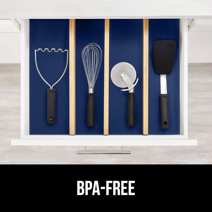 GORILLA GRIP DripGuard Shelf Liner, Non Adhesive Drawer and Kitchen Cabinet Protector, 20x240 Inch, Slip Resistant BPA Free Smooth Surface Plastic Liners for Cabinets, Bathrooms, Closets, Navy Blue