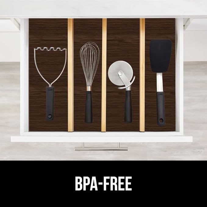 GORILLA GRIP DripGuard Shelf Liner, Non Adhesive Drawer and Kitchen Cabinet Protector, Slip Resistant BPA Free Smooth Surface Plastic Liners for Cabinets, Bathrooms, Closets, 17.5x120 Inch, Wood