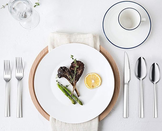 - MODERN - Contemporary design with square edge ends, Simple and classic flatware blends with many dinnerware, Elevate dining experience with decent eating utensils