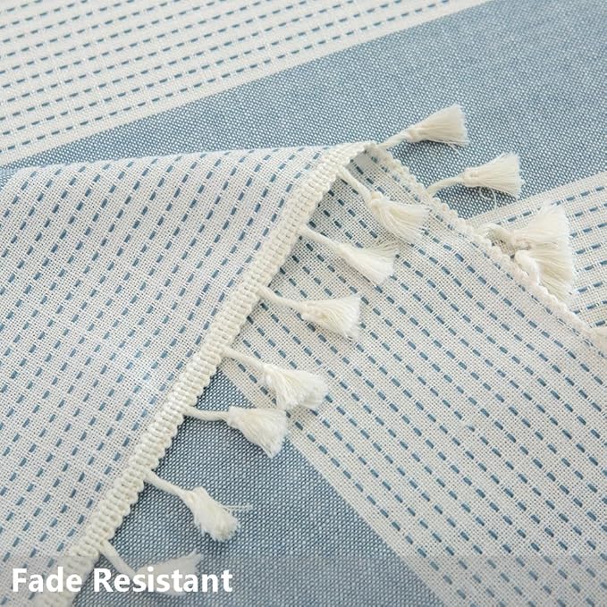 TruDelve Navy Blue and White Striped Rectangle Tablecloth Boho Cotton Cloth Tablecloths for 6 Foot Rectangle Tables (86"x55", Blue)