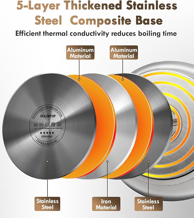 - BOILS WATER FASTER - Crafted with a 5-layer construction of 18/8 culinary-grade stainless steel and an aluminum capsule base, the DCLOBTOP kettle ensures rapid, even heat distribution—unlike flimsy single or double-layered teakettles. Spend less time waiting and more time enjoying your perfect brew.