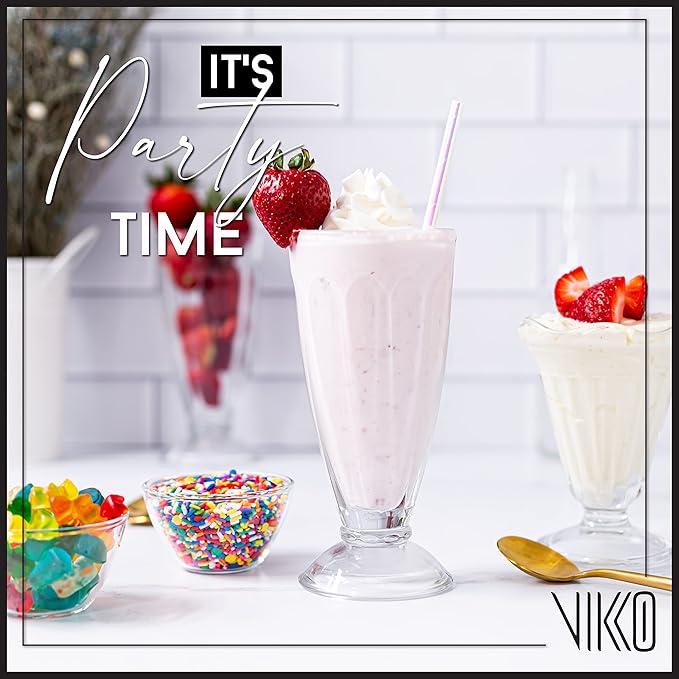 Vikko Milkshake Glasses, Set of 6 Footed Ice Cream Cups, 11.5 Ounce Milkshake Cups, Thick and Durable Dessert Cups Glass, Ice Cream Bowls, Sundae Glasses