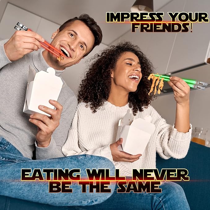 LIGHTSABER CHOPSTICKS LIGHT UP STAR WAR CHOPSTICK LED Glowing Light Saber Chop Sticks REUSABLE Sushi Sabers Cool Fun Geeky STARWAR Chop Stick Set Darth Red Green Blue Purple | 4 Pairs CASE GIFT BOX