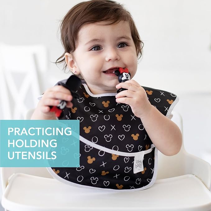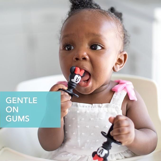 Bumkins Disney Baby Utensils Set, Chewtensils Silicone Spoons for Dipping, Self-Feeding, Baby Led Weaning, Trainer Learning, First Stage Eating, Soft Fork and Spoon, Babies 6 Months, Minnie Mouse