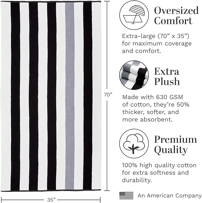 - SUPERIOR CONSTRUCTION: We use finer thread, that’s about half as thin as typical beach towels and 4x the thread and 2x the total cotton into one of our towels, creating an exceptionally soft, plush and oversized (70 in. x 35 in.) beach and pool towel with satin edges