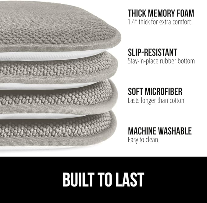 GORILLA GRIP Slip Resistant Chair Cushions, No Ties Required, Memory Foam Pads for Dining Room, Kitchen Table, Office, Rocking Chairs, Plush Seat Cover Cushion Pad, Home Decor, Set of 4 16x16, Lt Gray