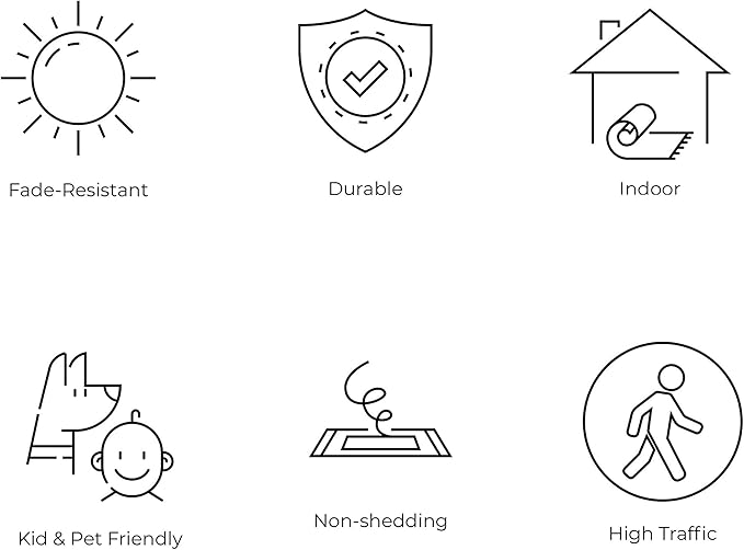 - PET-FRIENDLY AND DURABLE: Durable for high-traffic areas, soft and comfortable area rug perfect for families with kids; Low-pile synthetic rug fibers won’t trap dirt and debris, so they’re pet-friendly and easy to clean