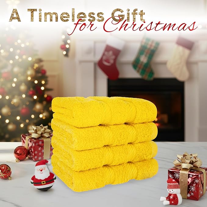 American Soft Linen Luxury Washcloths for Bathroom, 600 GSM 100% Cotton 4 Piece Turkish Wash Cloth Set, 13x13 in Soft Rags for Body and Face, Yellow Washcloths