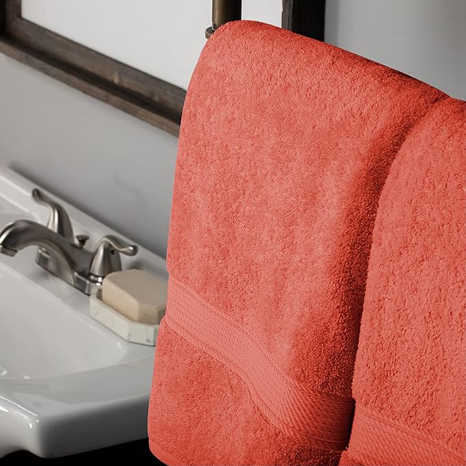 Superior Egyptian Cotton Pile 10 Piece Towel Set, Includes 2 Bath, 4 Hand, 4 Face Towels/Washcloths, Ultra Soft Luxury Towels, Thick Plush Essentials, Guest Bath, Spa, Hotel Bathroom, Coral