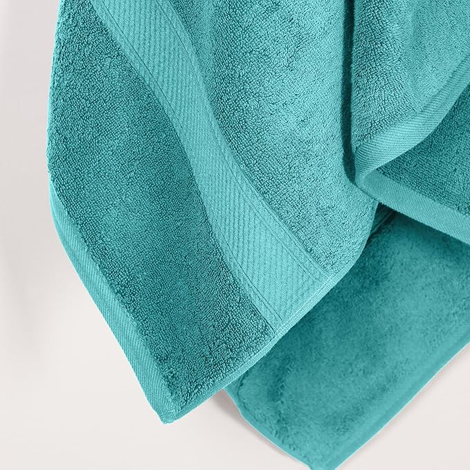 Superior Egyptian Cotton Pile Bath Towel Set of 2, Ultra Soft Luxury Towels, Thick Plush Essentials, Absorbent Heavyweight, Guest Bath, Hotel, Spa, Home Bathroom, Shower Basics, Turquoise