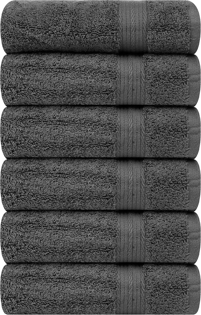 Ample Decor Hand Towels for Bathroom 18 X 28 Inch 600 GSM 100% Cotton, Soft Absorbent - 6 Pcs Gray