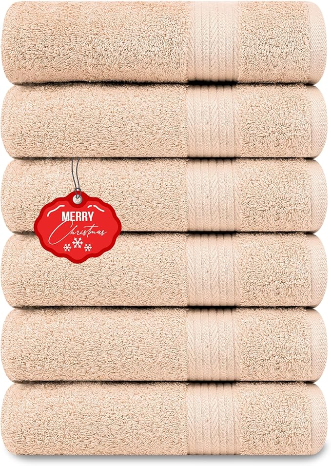 Ample Decor Hand Towel 18 X 28 Inch Pack of 6 600 GSM 100% Cotton,Oeko Tex Certified Soft Absorbent Thick Durable Premium Quality, for Hotel, Bathroom,Spa,Daily Use,Gym-Machine Washable-Beige