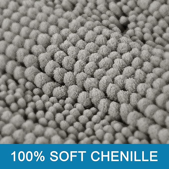 - ULTRA THICK: 2 Piece Set. These bath rugs are passed GLOBAL RECYCLED STANDARD certificate. Compare the normal quality 1350g/sm, this plush chenille carpet set is more thick and bushy, quality up to 2000g/sm weight, thus make the bath mats amazing soft and cozy like a comfortable quilt protector for your feet