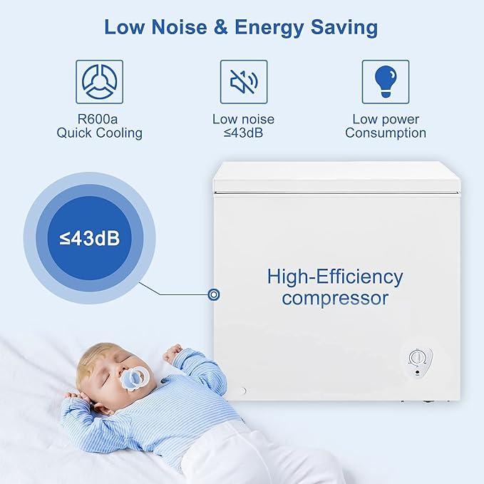 - ❄ Low Noise & 1-year warranty: Our chest freezer 7.0 Cu. ft is low noise(≤43dB)operation, and you will not be disturbed by the noise when you sleep & rest. We provide a 12-month warranty and any problems with this chest freezer, please feel free to contact us at anytime.