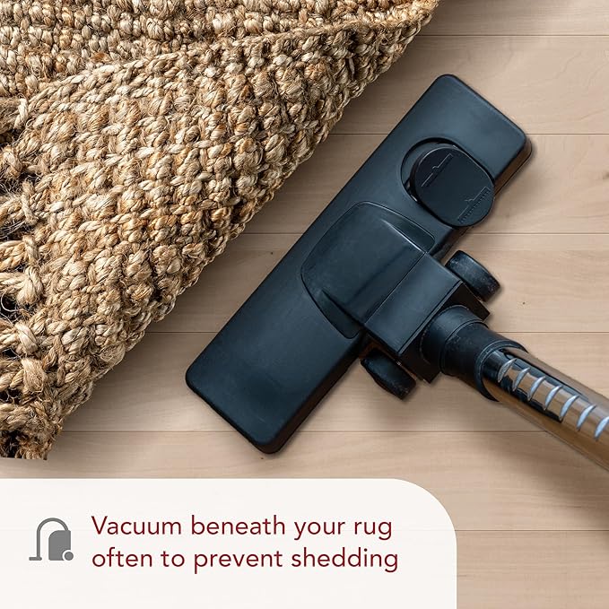 - Vacuum your jute rug 1-2 times a week on the lowest power level or with handheld attachment and spot clean as needed with mild detergent