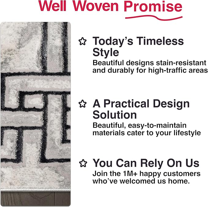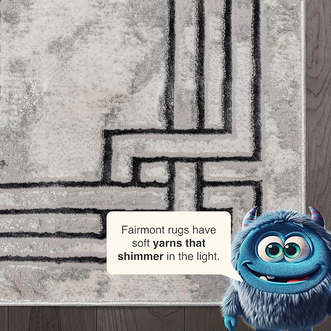 Well Woven Fairmont Collection Huntington Grey Marble Border Elegant & Soft 5x7 Area Rug Perfect for Bedroom & Living Room Durable Stain Resistant & Easy to Clean