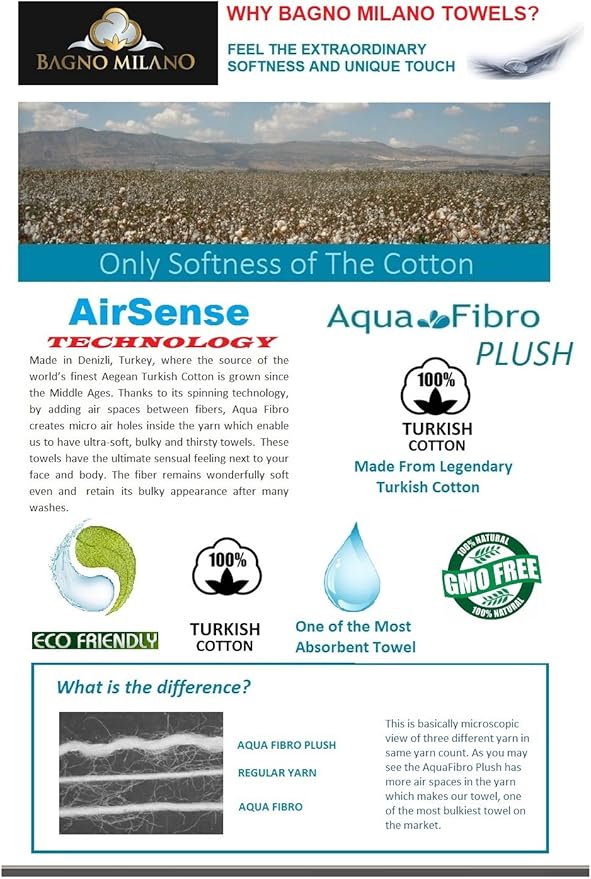 - Made in Turkiye : Our 100% Turkish Cotton Towels are crafted with Aqua Fibro’s Unique Spinning Technology to create an ultra-plush and absorbent bath towel set