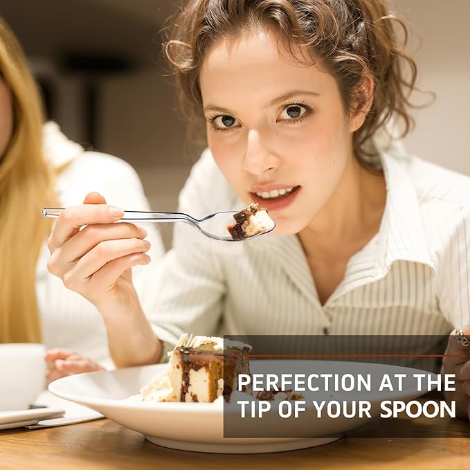 - 🍴𝗦𝗶𝗹𝗸𝘆-𝗦𝗺𝗼𝗼𝘁𝗵 𝗦𝗰𝗼𝗼𝗽𝗶𝗻𝗴 𝗘𝘅𝗽𝗲𝗿𝗶𝗲𝗻𝗰𝗲 - Crafted with ultra-smooth edges and a deep bowl design, these crystal-clear spoons glide through oatmeal, yoghurts, and wedding cake servings. The rounded tip gently cradles delicate desserts, perfect for your baby's first birthday smash cake