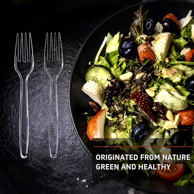 - 🍴𝗦𝗮𝗳𝗲 & 𝗛𝗲𝗮𝗹𝘁𝗵𝘆 𝗠𝗲𝗮𝗹𝘀 - Crafted with food-grade polystyrene, our crystal-clear forks are rigorously tested to be BPA-free and toxin-free. Designed with families in mind, they ensure every bite from your child's school lunch to grandma's holiday pie is served with peace of mind