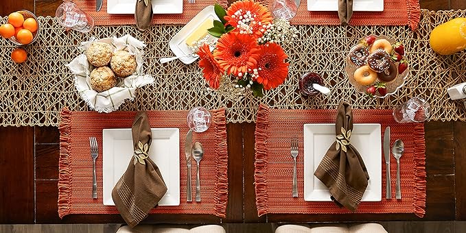 DII Variegated Tabletop Collection, Placemat Set3x19, Burnt Orange, 6 Piece