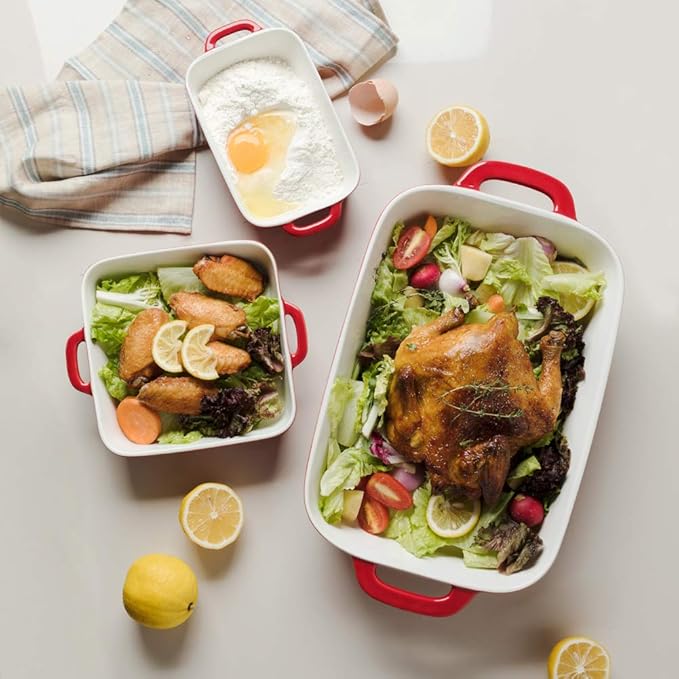 - Meet All Baking Needs - The ceramic rectangular baking pan set can be used for heating and storage of bread, pasta, lasagna, casserole, chicken, barbecue, beef, vegetable food, to meet your different needs. This is a great choice for gifts.