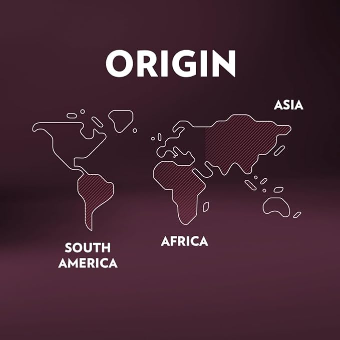 - BLEND: Made from Arabica and Robusta beans, this naturally caffeinated blend is sourced from Asia, Africa, and South America.