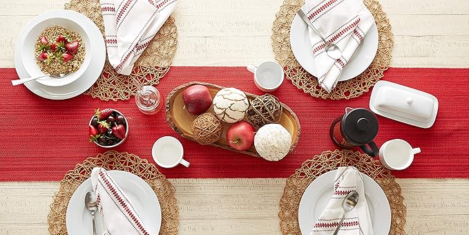 - AN EVERYDAY COLLECTION FOR YOUR KITCHEN: Our table runners are available in an assortment of colors and coordinate with our dishtowels, aprons, oven mitts, pot holders, napkins, and tablecloths; Own the whole collection