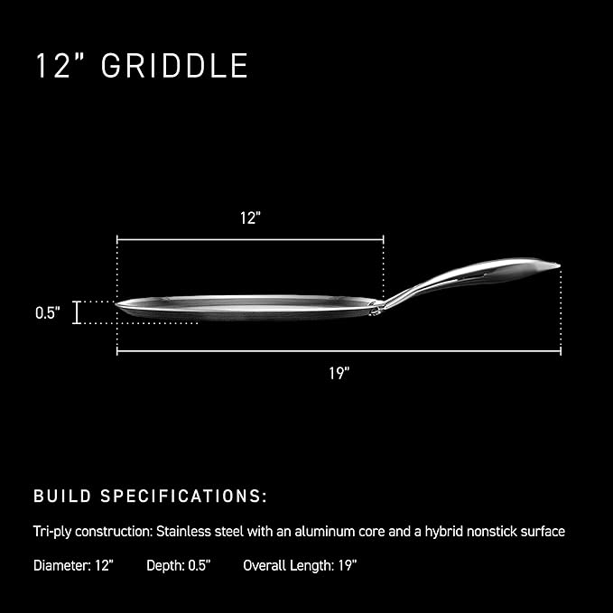 HexClad Hybrid Nonstick 12-Inch Griddle Pan, Stay-Cool Handle, Dishwasher-Friendly, Oven-Safe Up to 900°F, Induction Ready, Compatible with All Cooktops