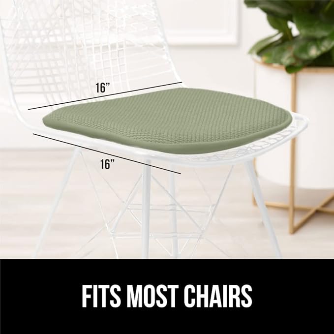 GORILLA GRIP Slip Resistant Chair Cushions, No Ties Required, Set of 8 Memory Foam Pads for Dining Room, Kitchen Table, Office, Rocking Chairs, Plush Seat Cover Cushion Pad, Home Decor, 16x16, Sage