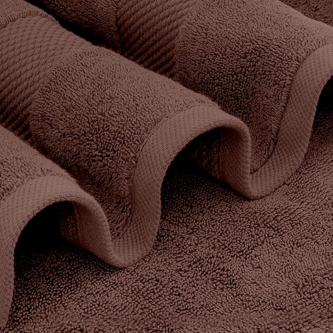White Classic Luxury Bath Towel Set of 8 Pieces - 100% Turkish Cotton Highly Absorbent Towels for Bathroom, 2 Luxury Bath Towels 700GSM, 2 Hand Towels, 4 Washcloths, Brown