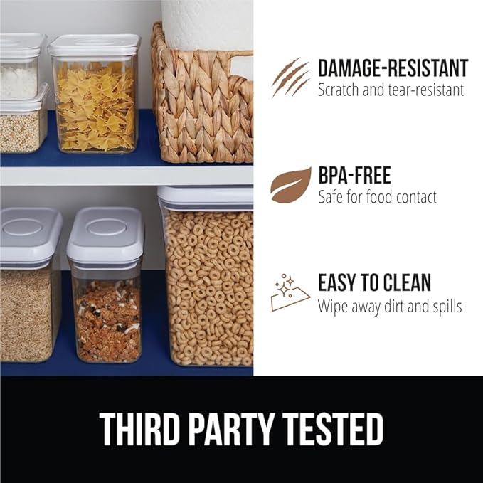 - EASY TO INSTALL: the liners are easy to use and can be used in any space such as pantry shelves, kitchen cabinets, office drawers, laundry rooms and more; liner measures 24” by 20’; trim off excess material or adjust to a custom size with scissors