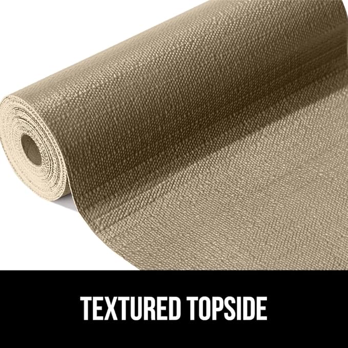GORILLA GRIP DripGuard Shelf Liner, Non Adhesive Drawer and Kitchen Cabinet Protector, 24x240 Inch, Slip Resistant BPA Free Smooth Surface Plastic Liners for Cabinets, Bathrooms, Closets, Beige