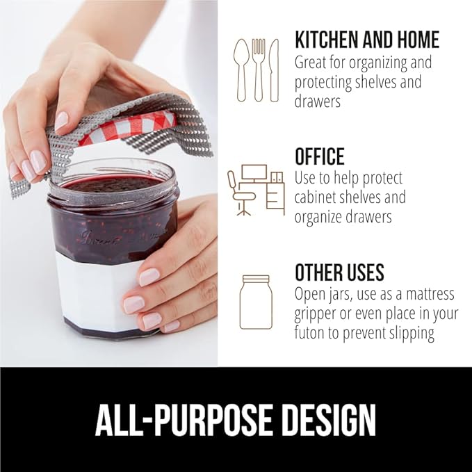 - KITCHEN, OFFICE, OR BATHROOM: liner can be used in several areas of your home; use it in your kitchen, pantry, work station, office room, laundry room, bathroom vanity shelves and more; perfect for organizing your space and home; use any excess liner pieces for opening jars and can also work great for a slipping futon, couch cushions, or mattresses