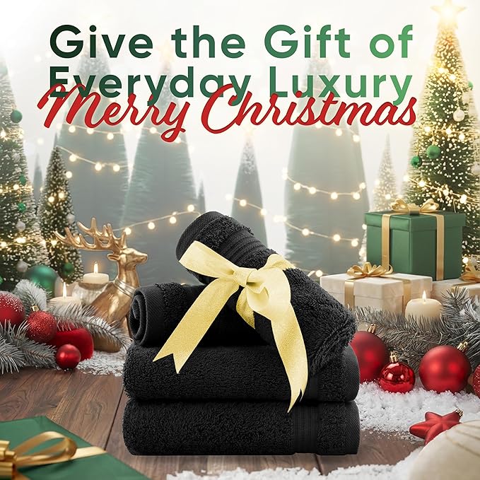 American Veteran Towel, 100% Cotton Turkish Washcloths for Bathroom Essentials 4 Pack, Soft Absorbent Wash Cloths Quick Drying Small Towels Washrags, Black